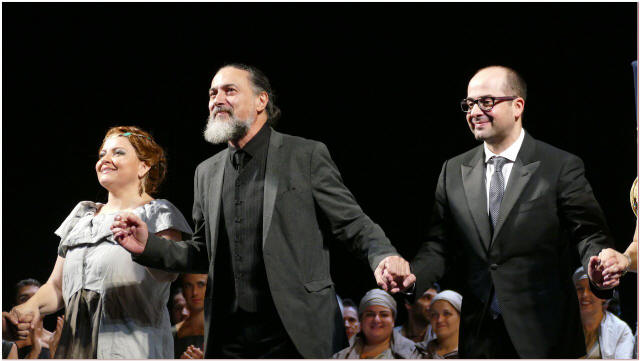 Nella foto Mario Mainino con Alessandro Abis (Faraone) e Ruzil Gatin (Osiride