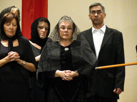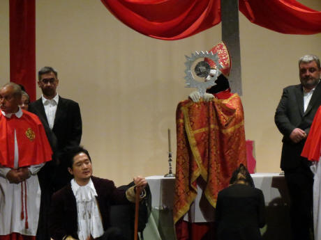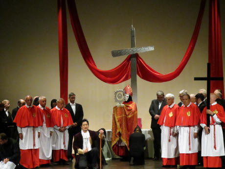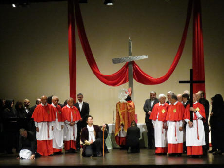 (Tutta la folla è rivolta verso l'altare maggiore;