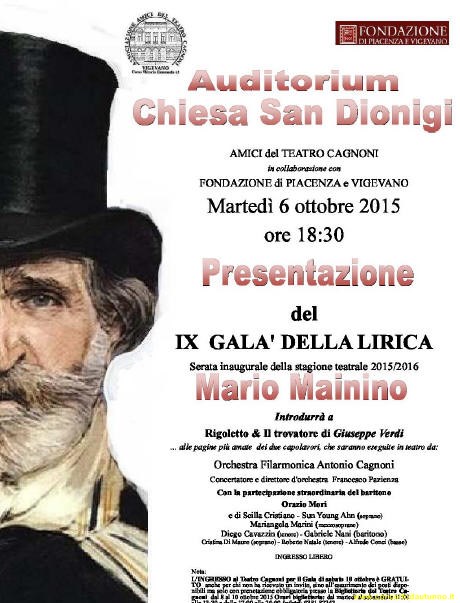 Mainino martedì 6 ottobre 2015 presso l'Auditorium Chiesa di San Dionigi