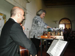 Lo strumento usato dal maestro Gianfranco Grisi è costituito da bicchieri,